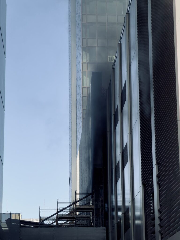 東京都内にある世界貿易センター南棟の工事現場で火災が発生し、現場周辺で黒煙が確認された。火元や出火の原因は現時点で分かっていない。
